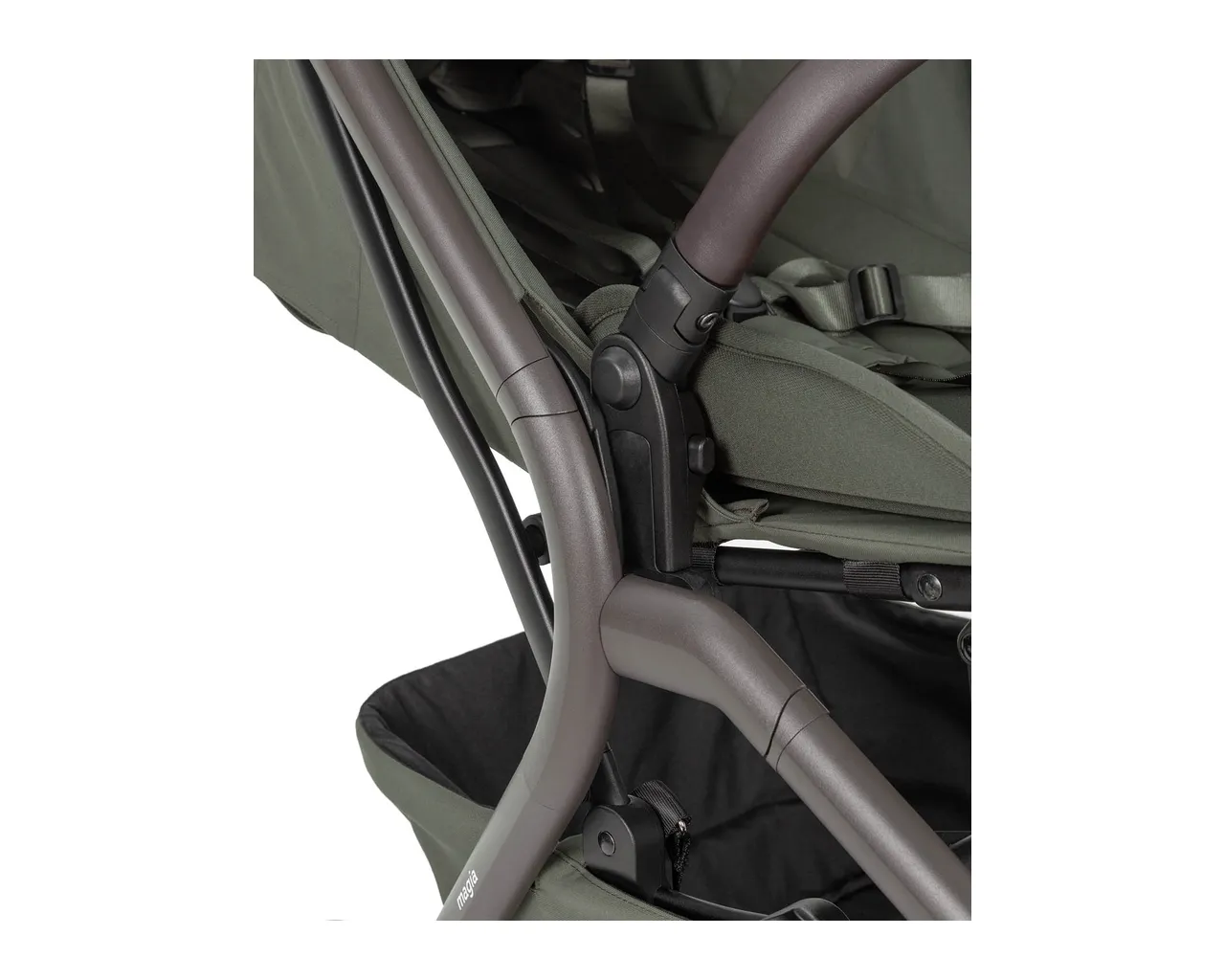 - Magnetyczna klamra: Nowoczesny system zapinania 5-punktowych pasów – szybki, bezpieczny i wygodny dla rodzica.