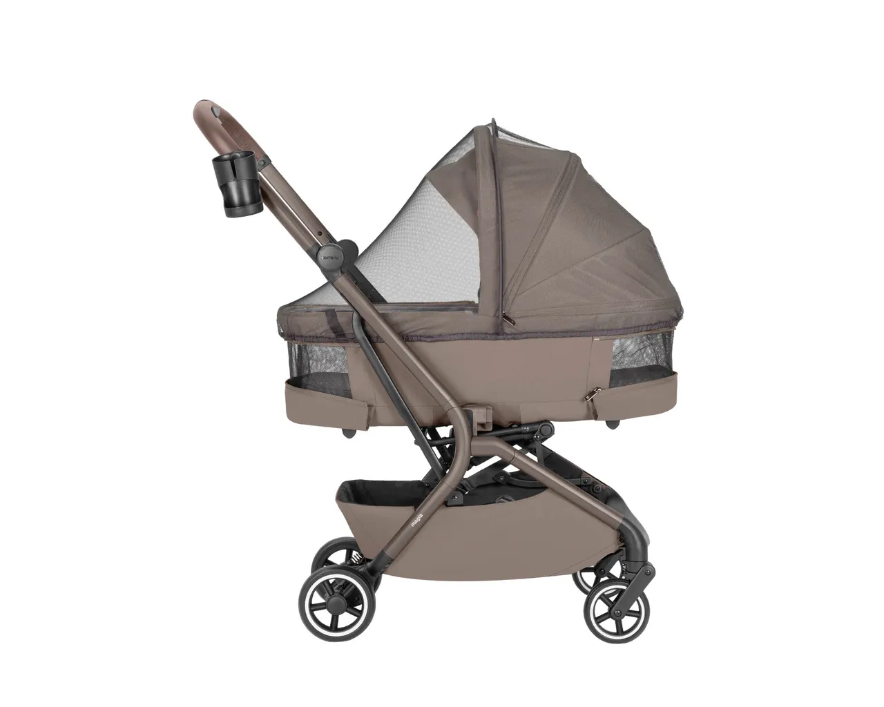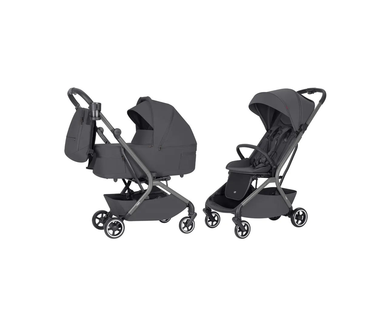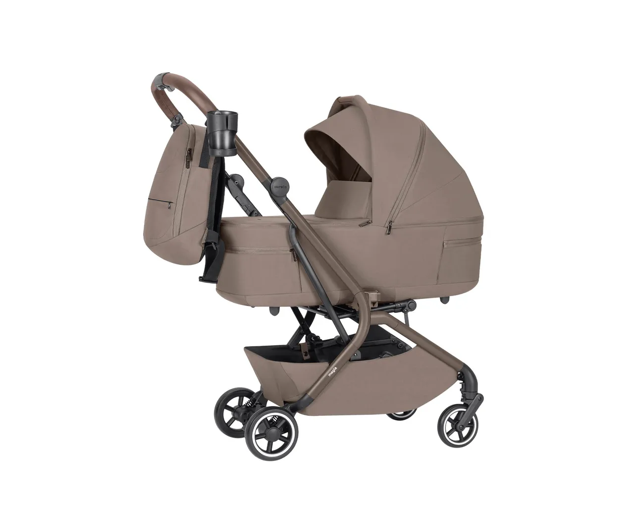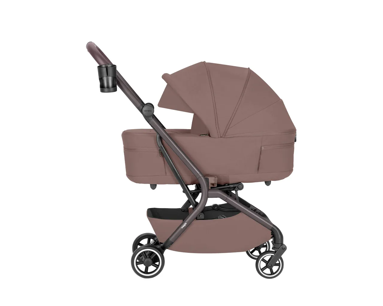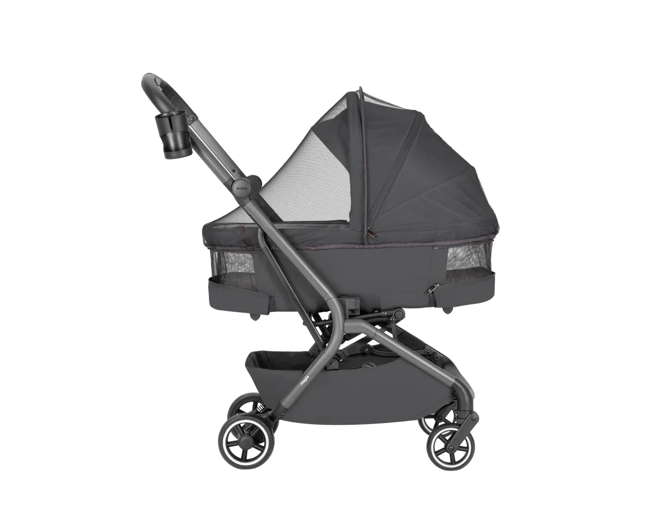 Carrello Magia to ultra-lekki wózek 2w1 (9,75 kg), który jako jeden z nielicznych składa się wraz z gondolą do wymiarów bagażu podręcznego. Łączy pełnowymiarowy komfort noworodka z mobilnością miejskiej spacerówki, oferując wytrzymałość aż do 22 kg i bogaty zestaw akcesoriów.