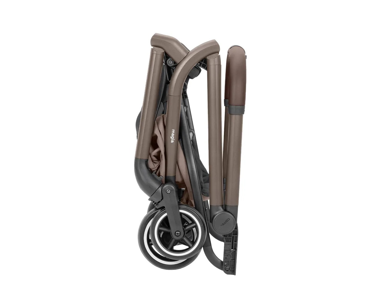 Tak! Dzięki rewolucyjnej konstrukcji Magia składa się wraz z gondolą do wymiarów ok. 55x45x28 cm. To sprawia, że jest to jeden z nielicznych wózków 2w1 na świecie, który można wnieść na pokład samolotu lub schować w najmniejszym bagażniku auta miejskiego.