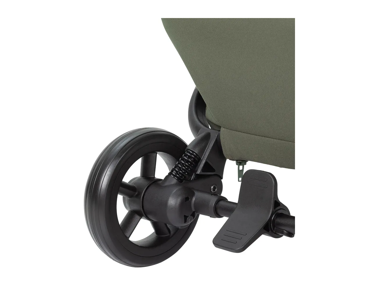 - Innowacyjny podnóżek: Konstrukcja bez barierek nie ogranicza nóg starszego dziecka, a podnóżek można całkowicie schować.