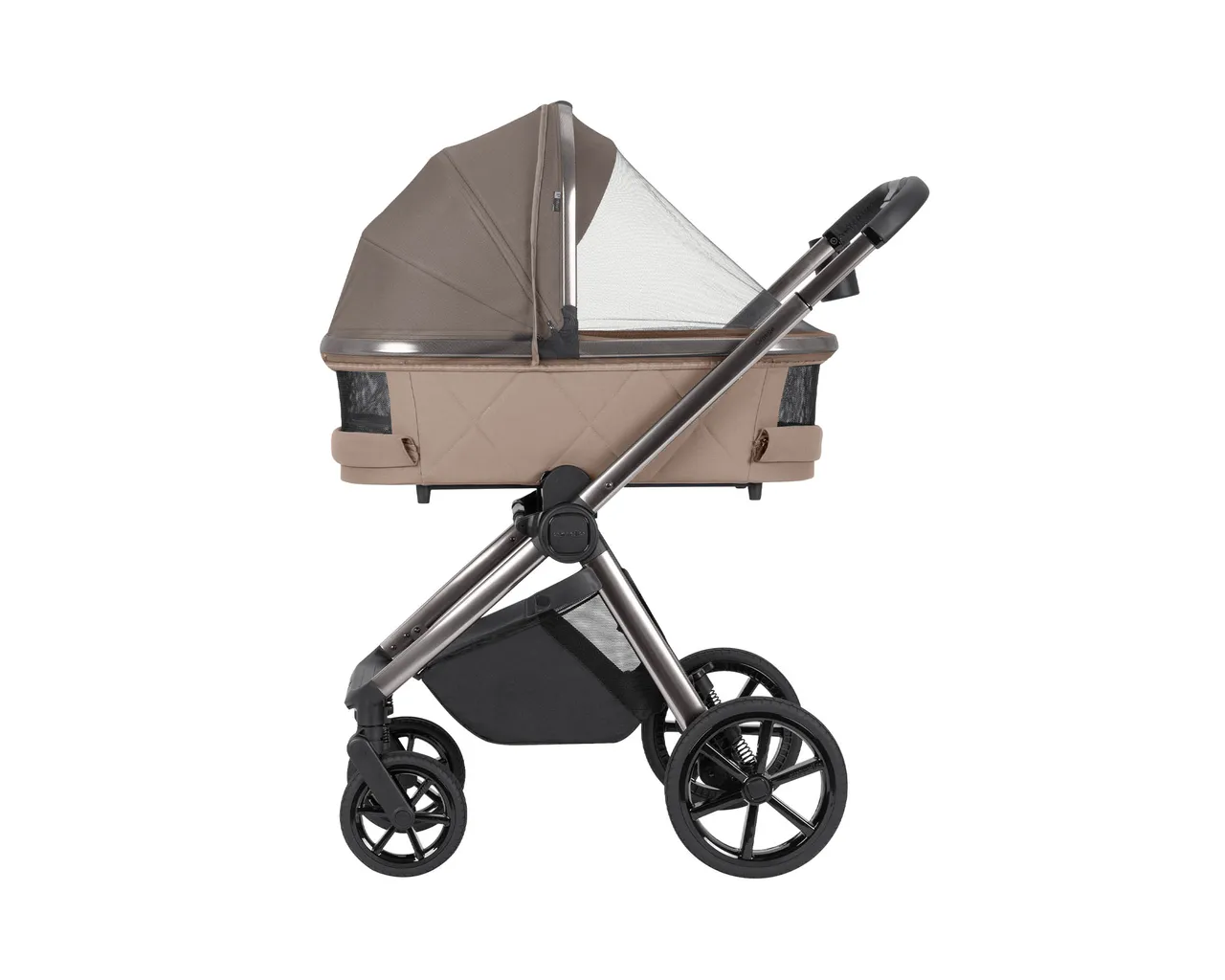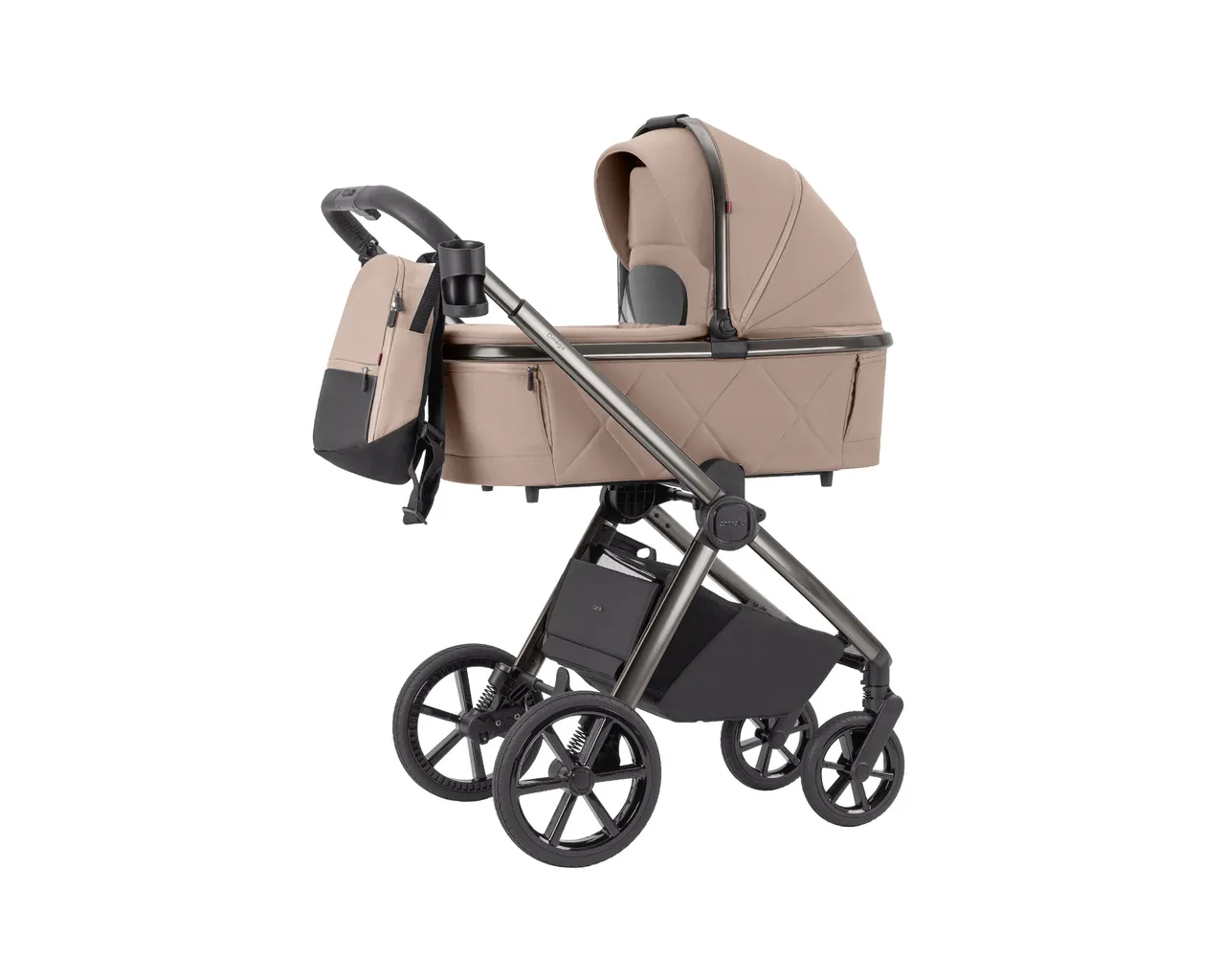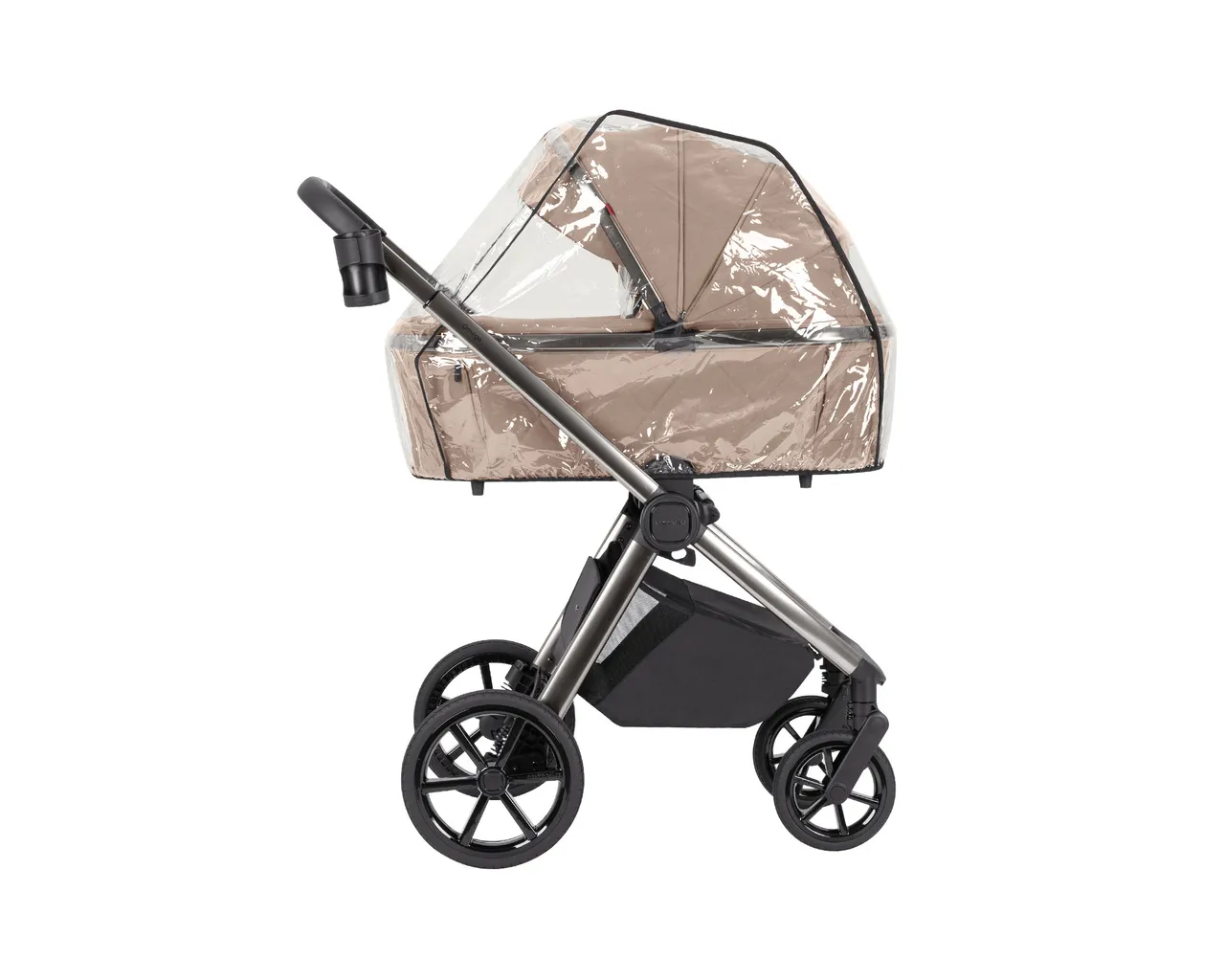 - Adaptery podwyższające: W zestawie otrzymujesz adaptery, które pozwalają podnieść gondolę o ok. 10 cm wyżej. To zbawienne dla kręgosłupa wysokich rodziców i poprawia kontakt wzrokowy z maluszkiem.