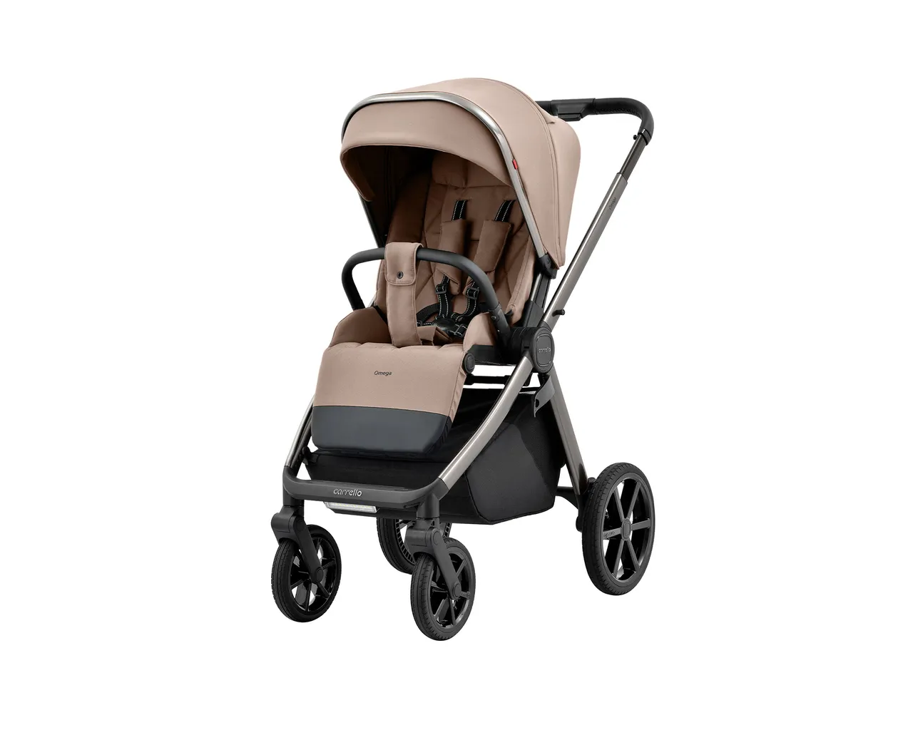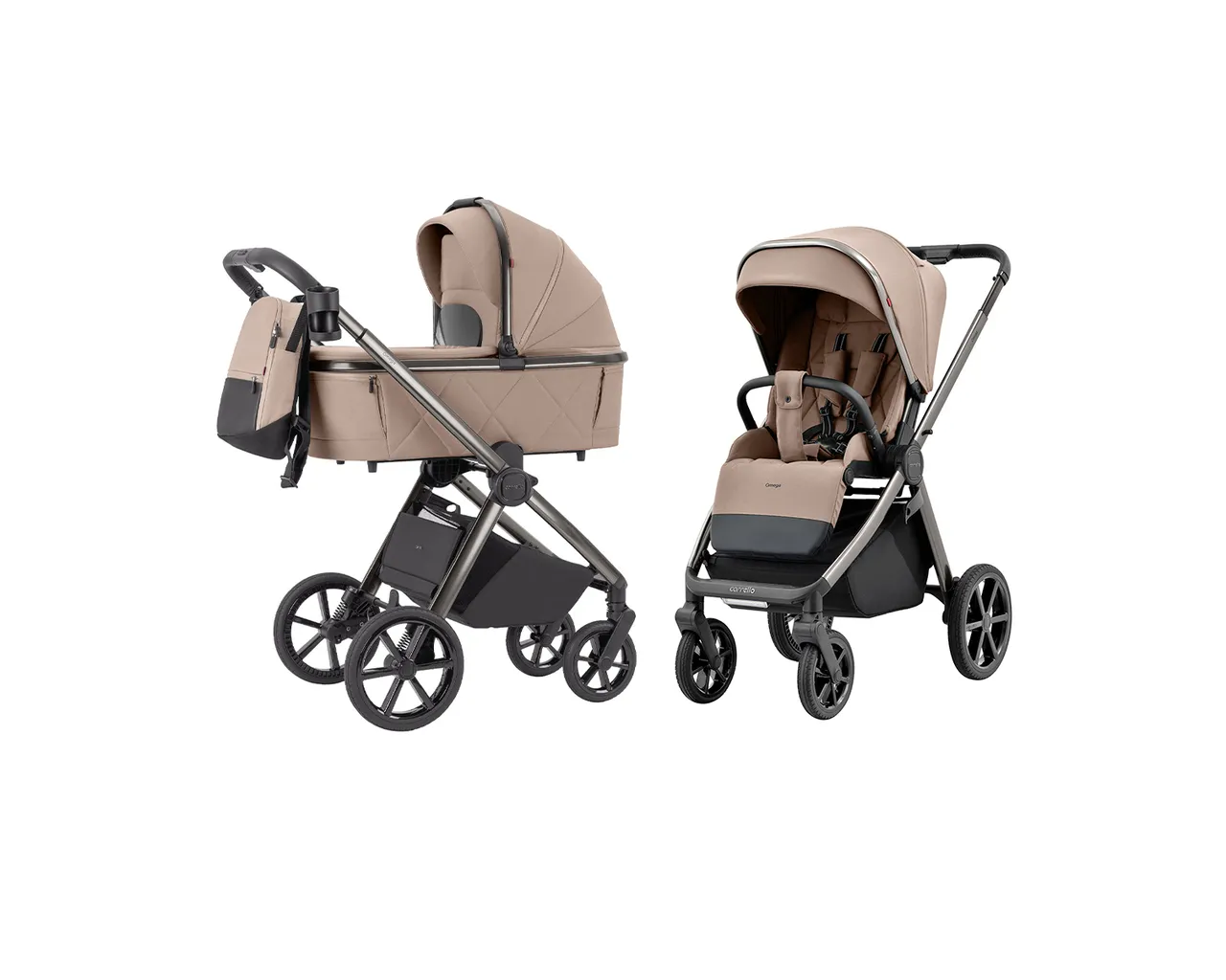 Carrello Omega CRL-6530/1 to luksusowy wózek 2w1 wyposażony w innowacyjne oświetlenie LED oraz zaawansowaną, dwustopniową amortyzację dla maksymalnego komfortu w każdym terenie. Wyróżnia się unikalną gondolą z materacem antyrefluksowym oraz siedziskiem, które dzięki regulacji wysokości budki rośnie wraz z dzieckiem aż do 22 kg.