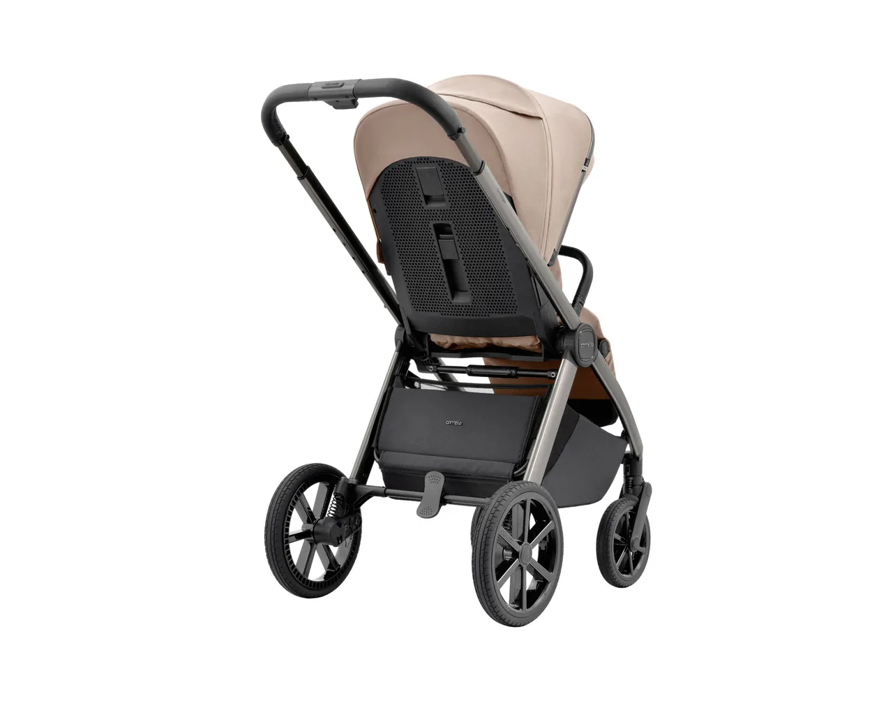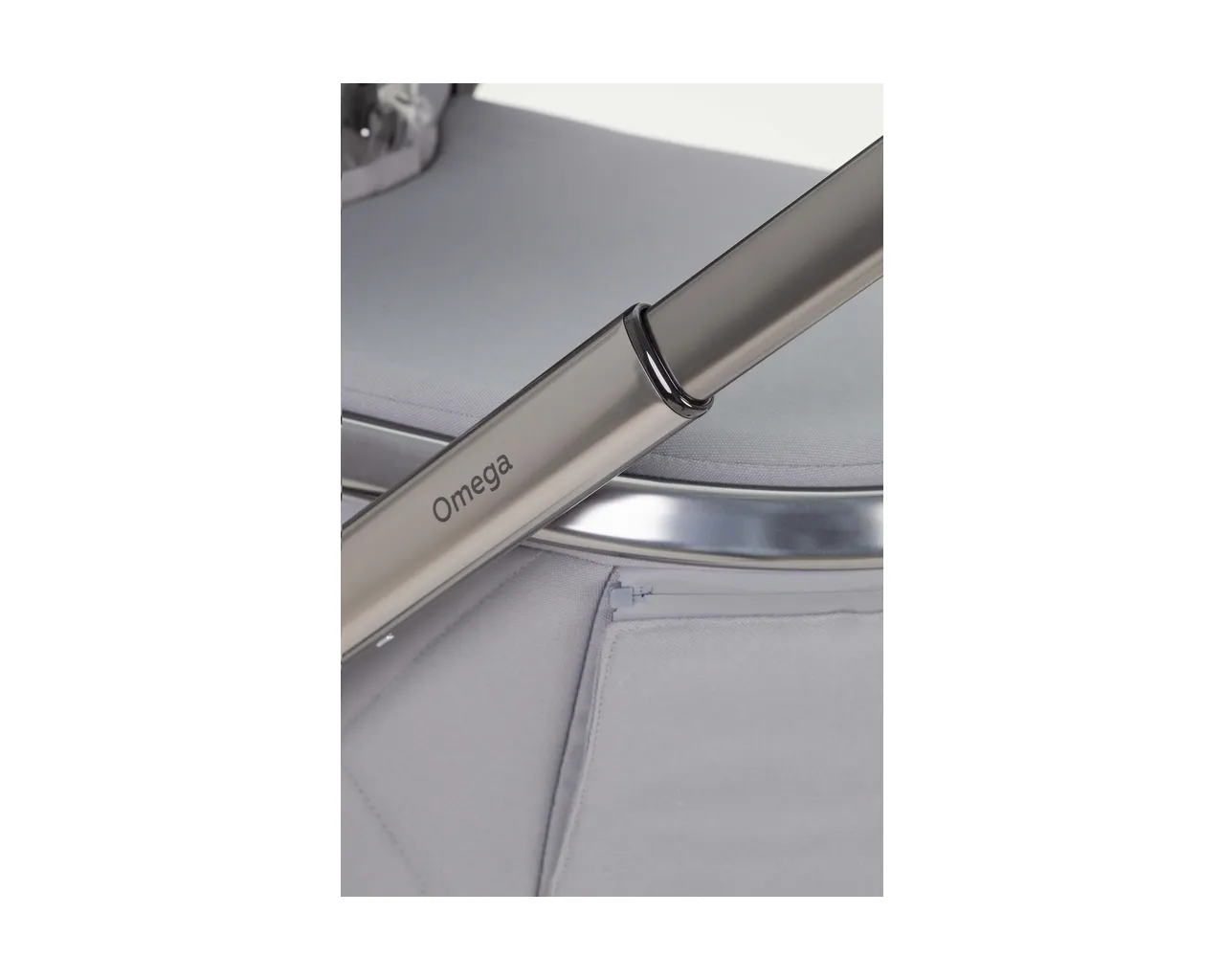 Model Omega posiada dwustopniową regulację tylnej amortyzacji. Pozwala to utwardzić wózek na równej nawierzchni (dla lepszej stabilności) lub go zmiękczyć, gdy wjeżdżasz na wyboistą drogę lub do lasu, aby zapewnić dziecku maksymalny komfort.