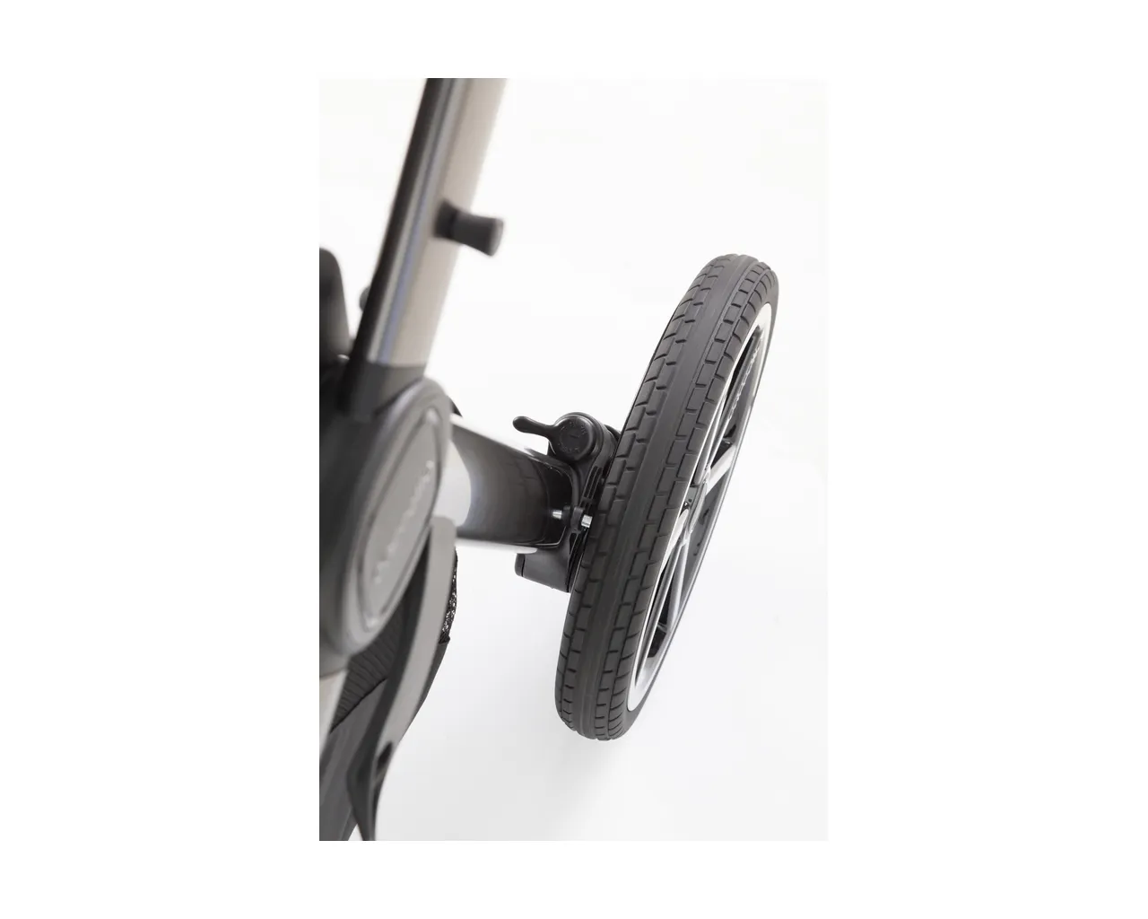 - Poliuretanowe koła XXL: Przednie 20 cm i tylne 29 cm średnicy. Materiał ten jest miękki jak guma, ale nie wymaga pompowania i jest całkowicie odporny na przebicia.