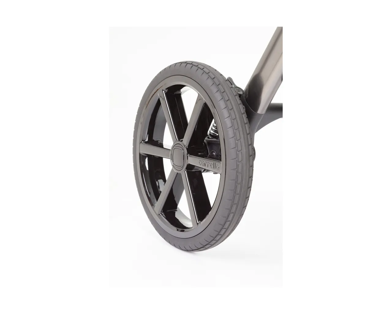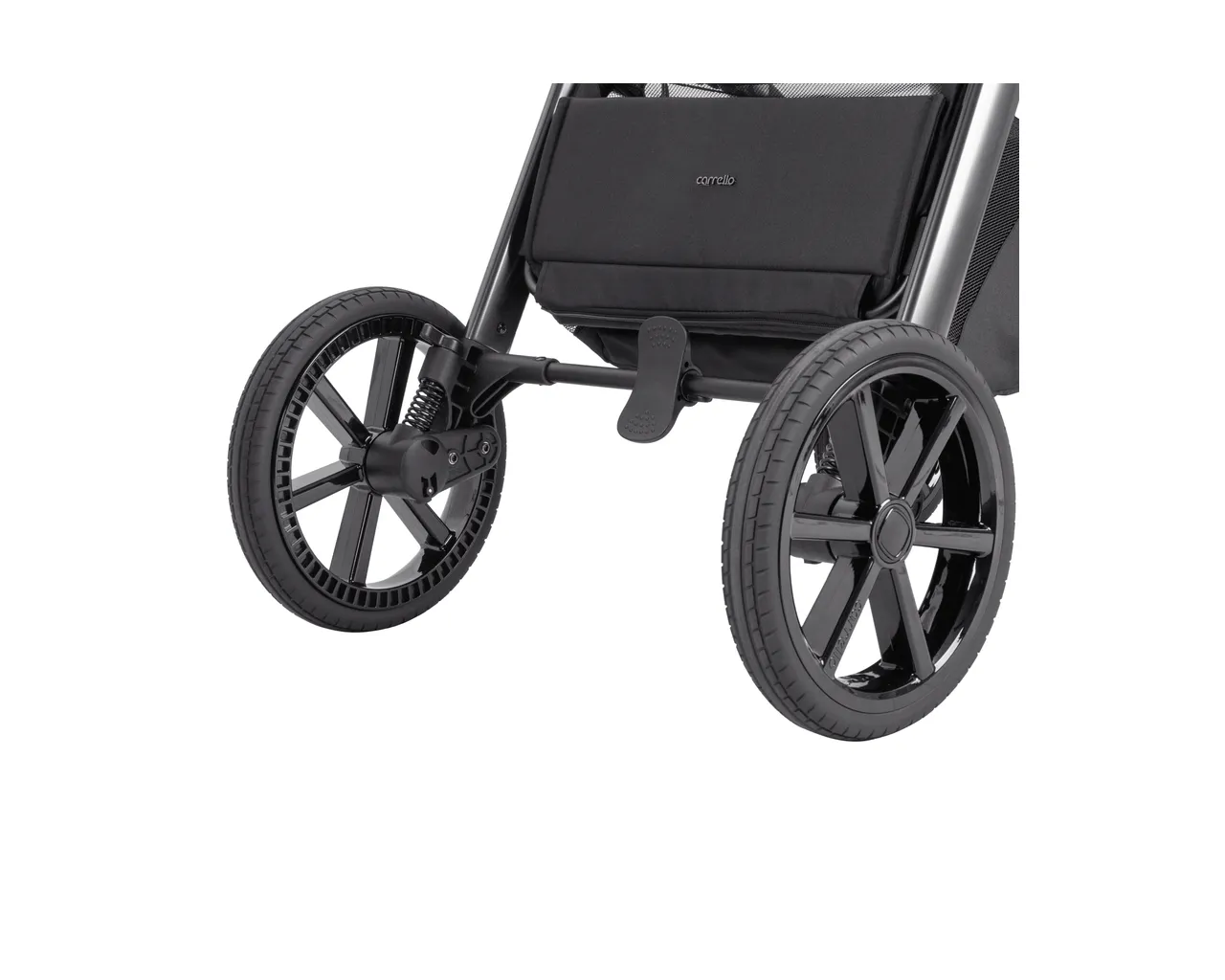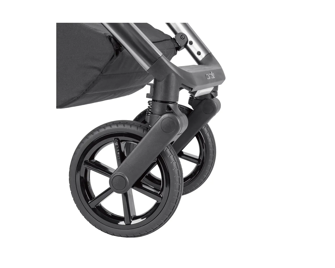 - Amortyzacja Anti-Shock: Przednie koła posiadają system absorpcji drgań, który chroni dziecko przed wstrząsami przy najechaniu na krawężnik.