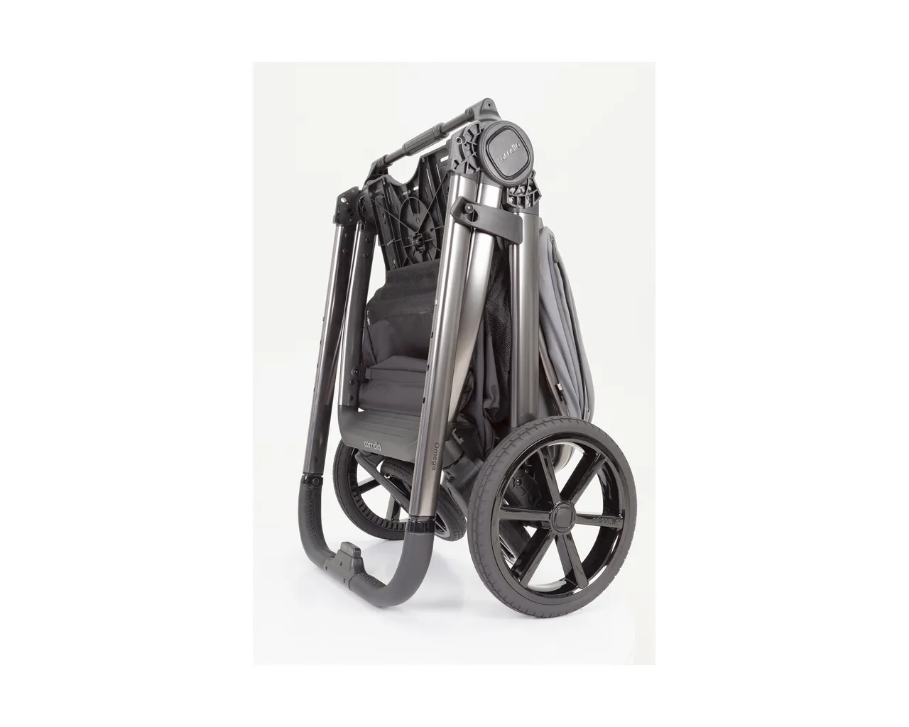 - Kompaktowe składanie: Cały wózek składa się jedną ręką razem z siedziskiem. Rama posiada automatyczną blokadę przed przypadkowym rozłożeniem.
