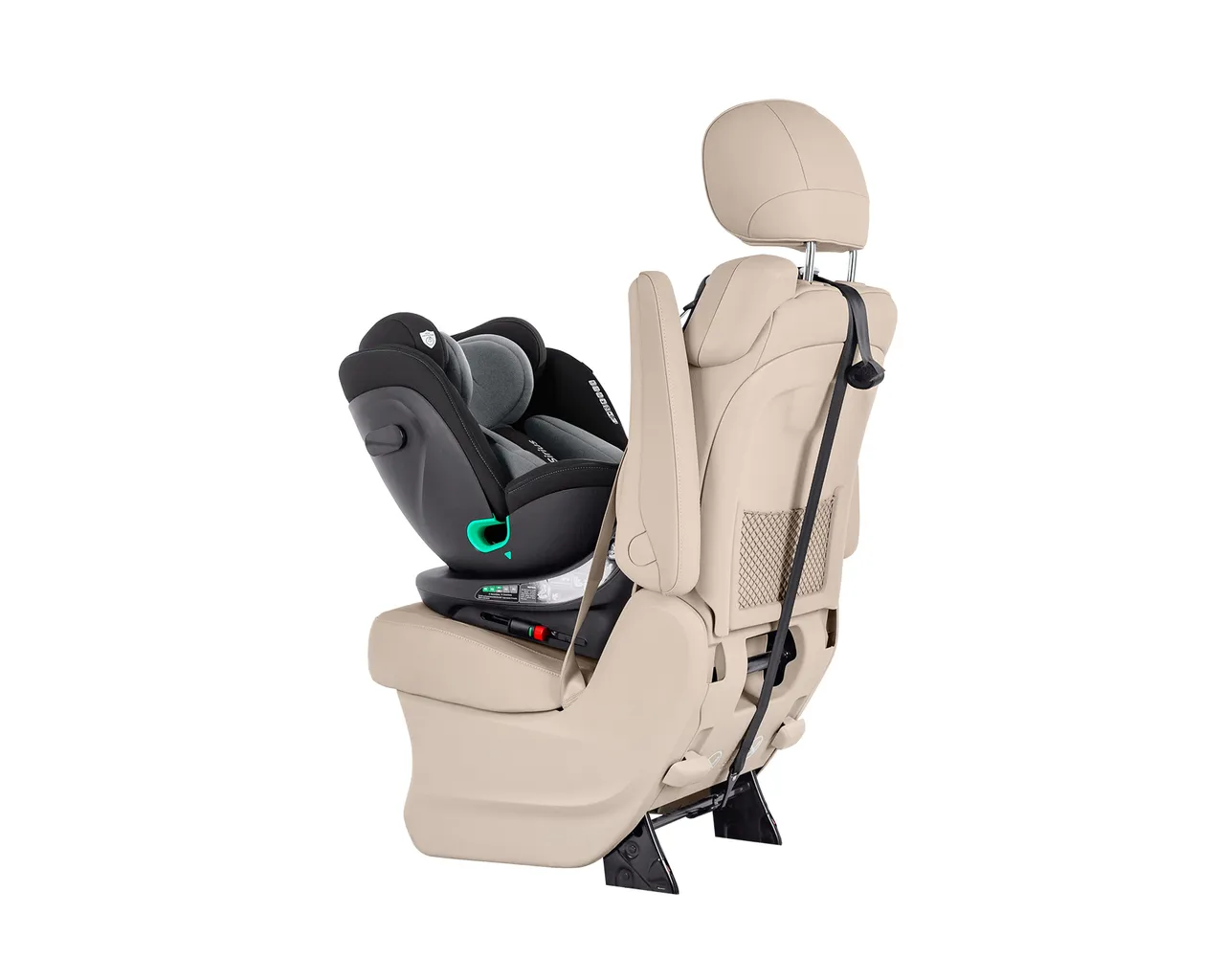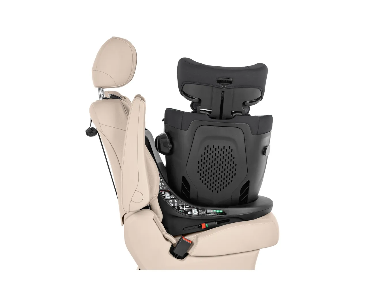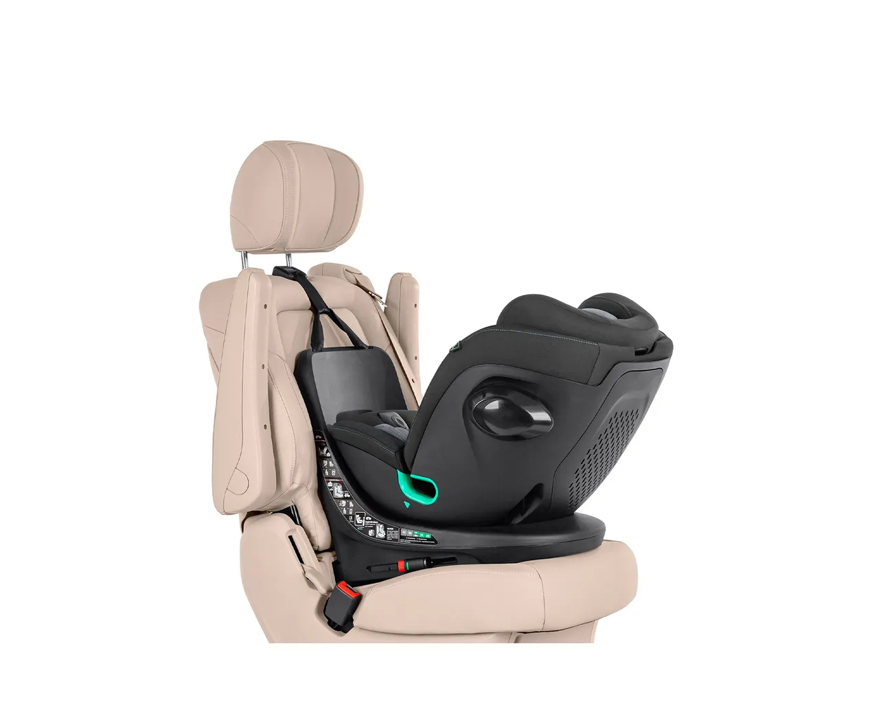 - Łatwe wsiadanie: Wystarczy obrócić fotelik twarzą do drzwi, aby swobodnie włożyć lub wyjąć dziecko – bez konieczności nienaturalnego schylania się.