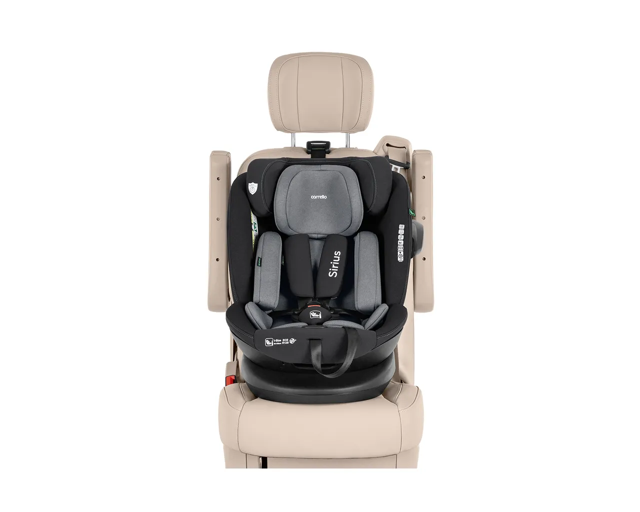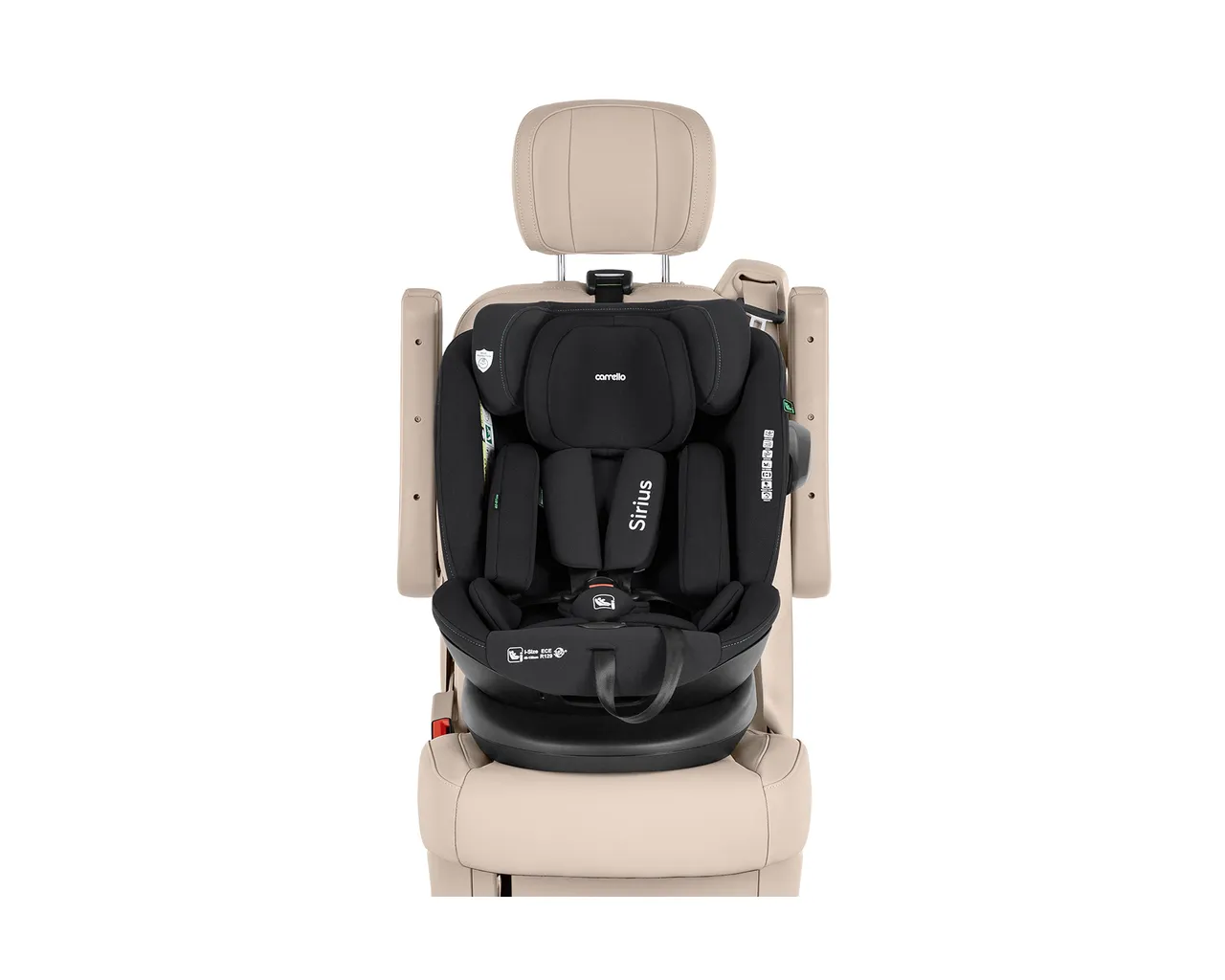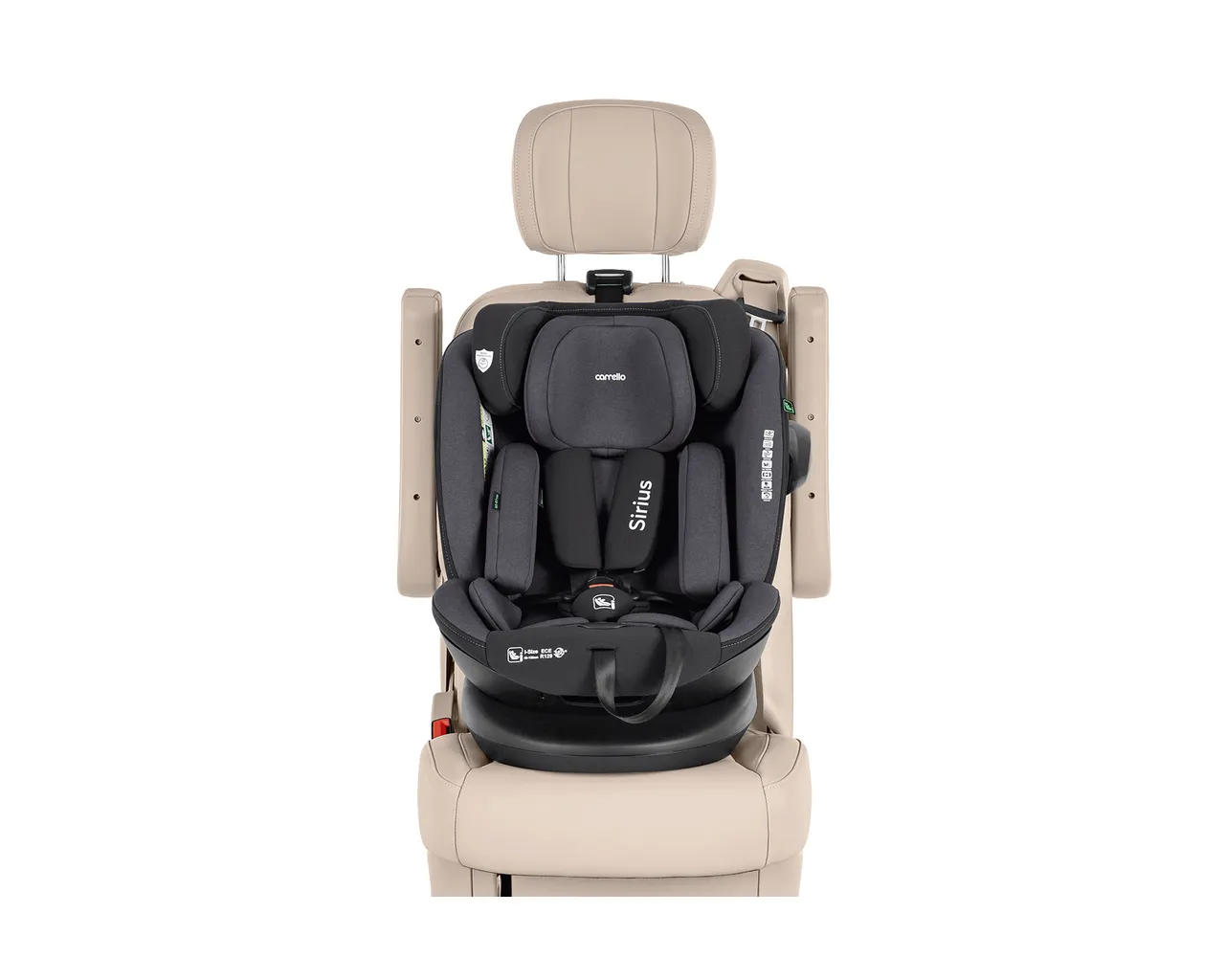 Carrello Sirius to innowacyjny fotelik i-Size (40-150 cm) z funkcją obrotu 360°, który dzięki systemowi ISOFIX oraz pasowi Top Tether gwarantuje najwyższą stabilność i bezpieczeństwo przez pełne 12 lat. Wyposażony w zaawansowaną ochronę boczną SPS oraz 10-pozycyjny regulowany zagłówek, zapewnia dziecku idealne dopasowanie i komfortową pozycję spoczynkową na każdym etapie rozwoju.