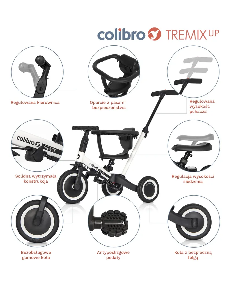 Colibro Tremix Up 6w1 – Rowerek wielofunkcyjny, trójkołowy/biegowy