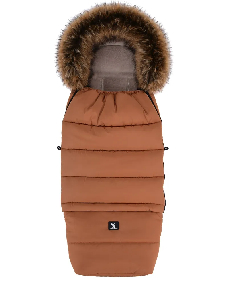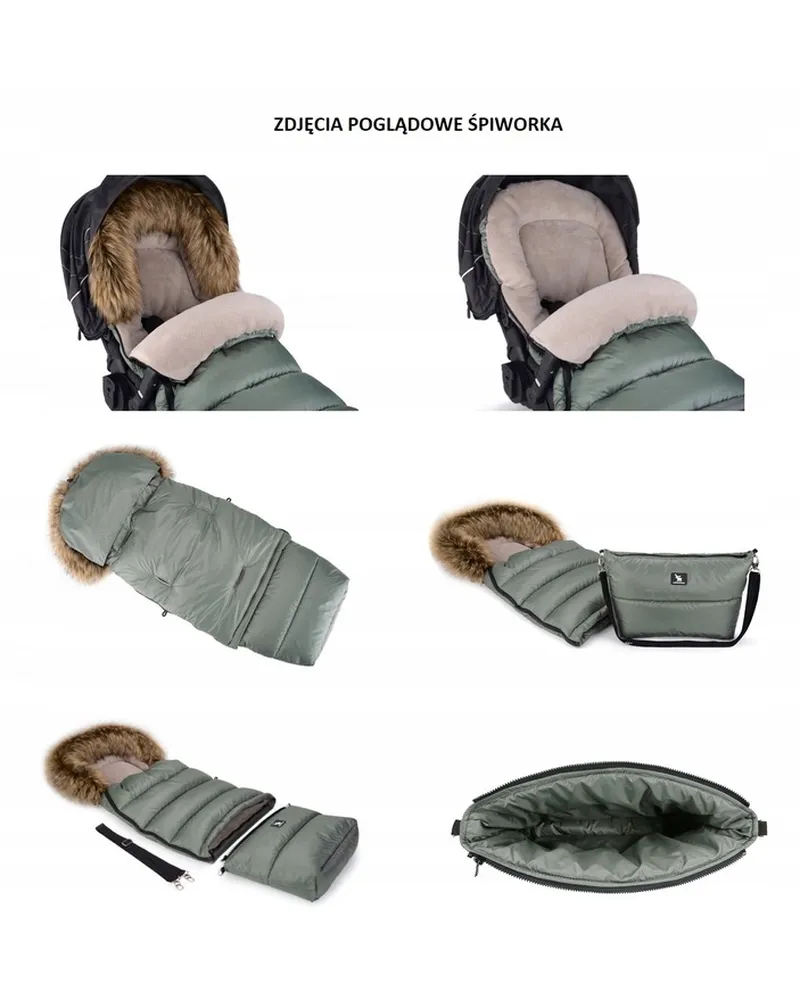 Ważne: Futerko ekologiczne występuje w trzech odcieniach (rudo-złote, brązowo-złote, szaro-srebrne) – dopasowanych kolorystycznie do wybranego modelu śpiworka.