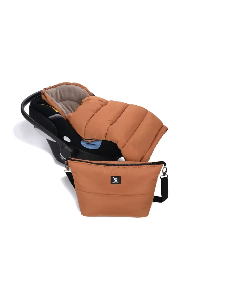 • Pierwszy okres (0-12 miesięcy): Używasz części górnej śpiworka w gondoli lub foteliku, a dolne przedłużenie służy Ci w tym czasie jako poręczna torba do wózka (pasek do torby w zestawie).