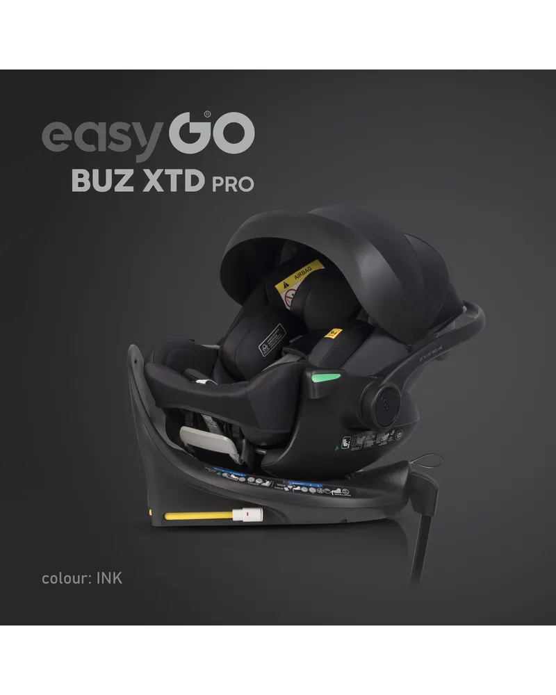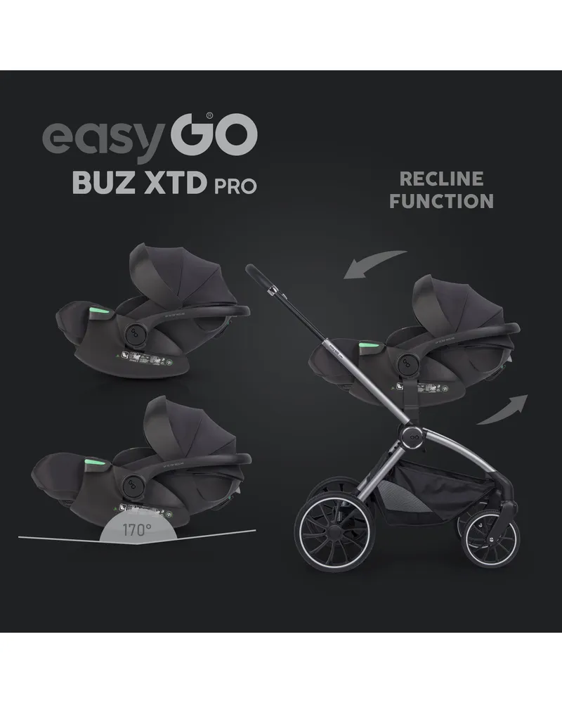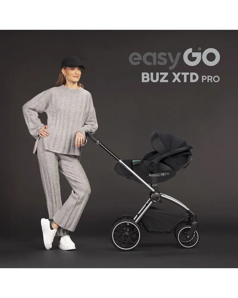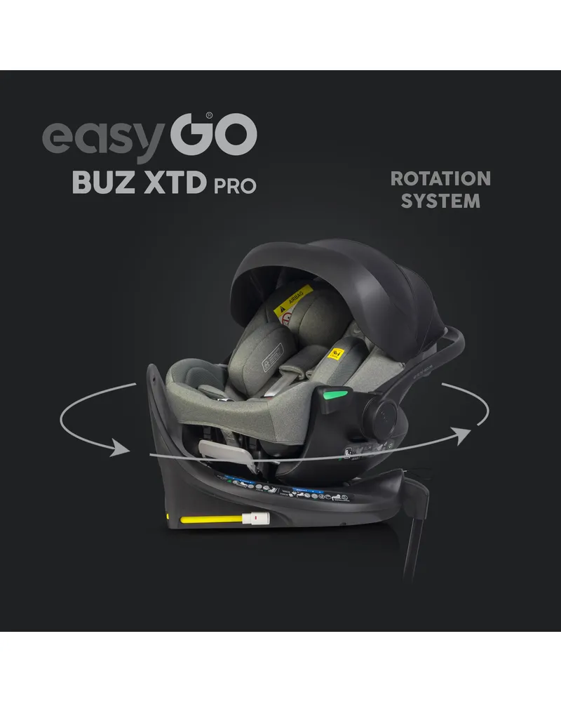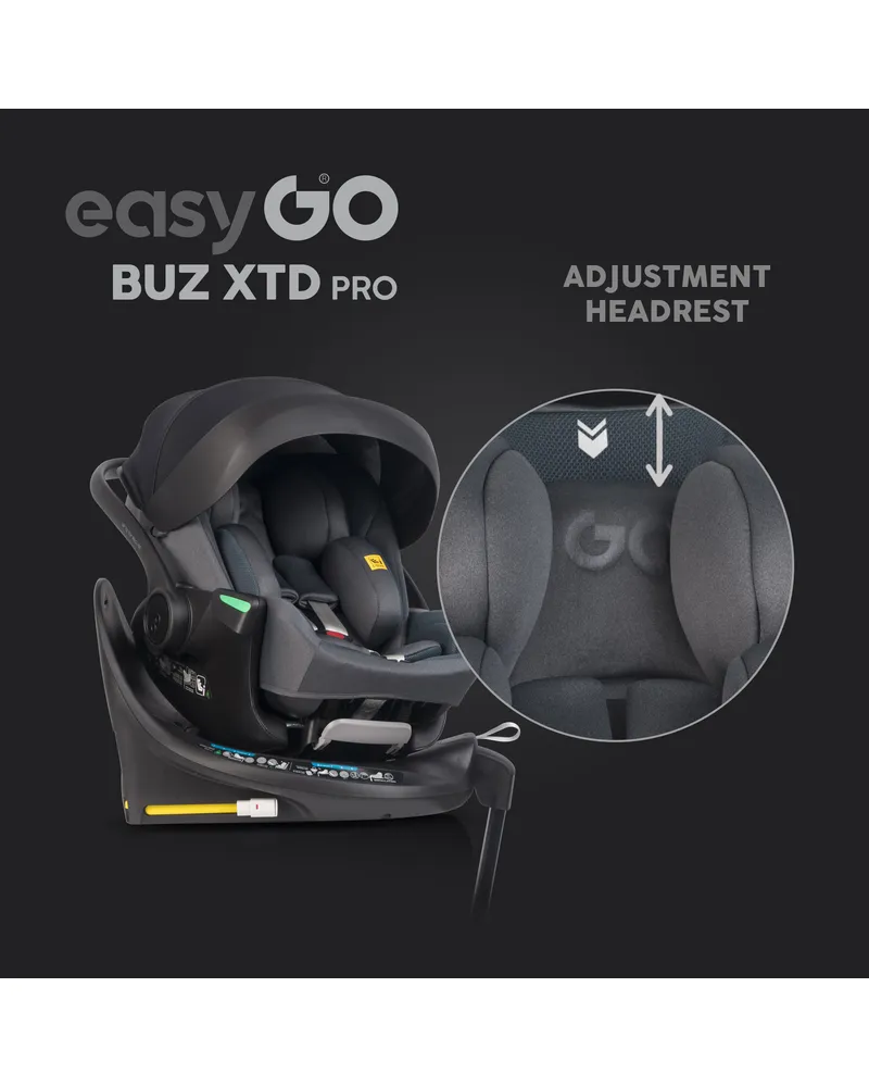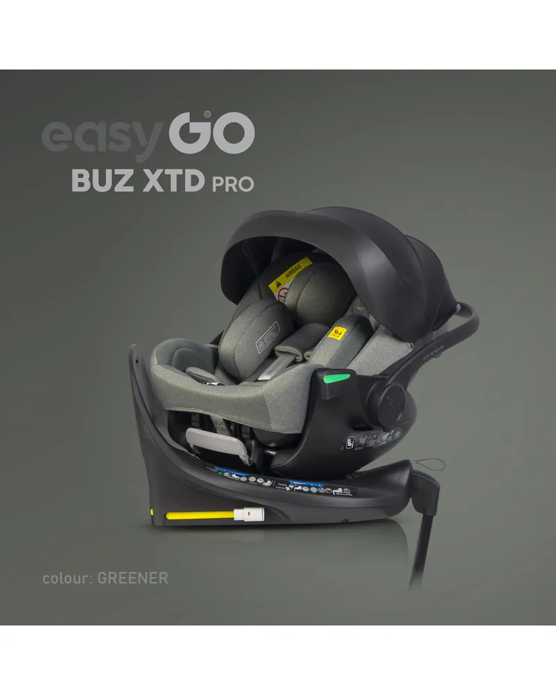 EasyGo BUZ XTD PRO to fotelik samochodowy dla dzieci 0-13 kg (40–87 cm) z funkcją rozkładania do spania i obrotową bazą ISOFIX, zapewniający maksymalny komfort i bezpieczeństwo w podróży. Można go zamontować na wózku dziecięcym, zastępując gondolę, a regulowany zagłówek automatycznie dopasowuje pasy do wzrostu dziecka. Dostępny w eleganckich kolorach Taupe, Ink, Granito i Greener.
