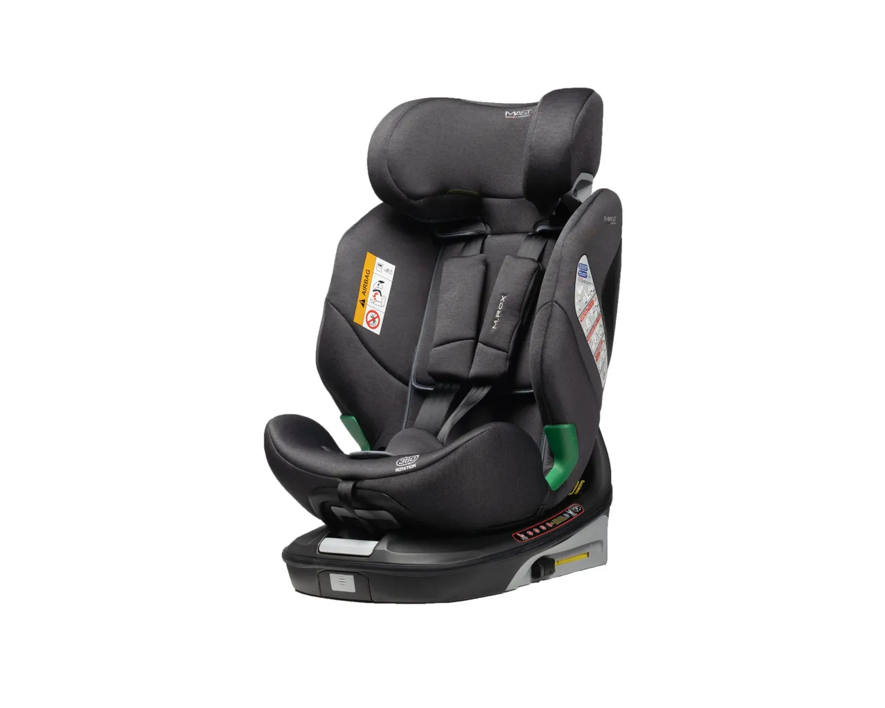 Mast M.Rox i-Size to nowoczesny, obrotowy fotelik samochodowy klasy premium zaprojektowany z myślą o maksymalnym bezpieczeństwie i wygodzie dziecka od pierwszych dni życia aż do około 12 roku życia. Spełnia najnowszą normę bezpieczeństwa i-Size ECE R129/03, oferując pełne wsparcie rozwoju dziecka przez wiele lat użytkowania. Dzięki funkcji obrotu 360° codzienne wkładanie i wyjmowanie dziecka z auta staje się szybkie, ergonomiczne i komfortowe — zarówno dla rodzica, jak i malucha.
