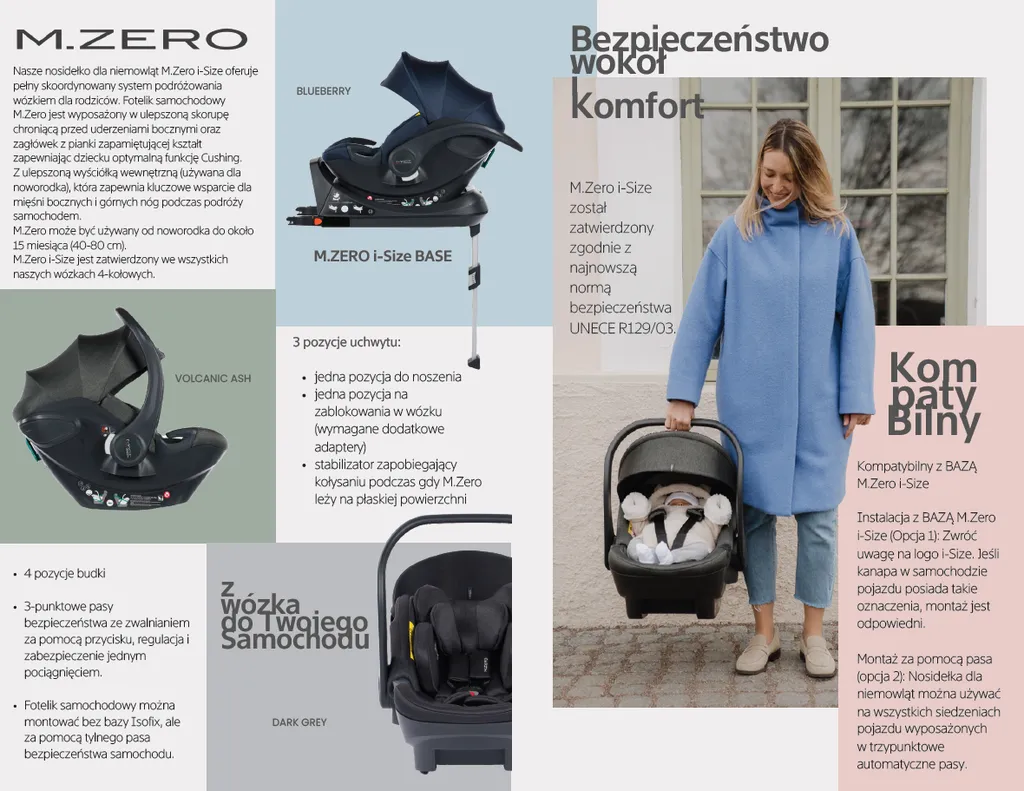 Model M.Zero i-Size to idealny wybór dla rodziców, którzy szukają bezpiecznego, lekkiego i wygodnego fotelika samochodowego dla noworodka oraz niemowlęcia do około 15 miesięcy. Sprawdzi się zarówno w codziennych dojazdach, jak i podczas dłuższych podróży rodzinnych.