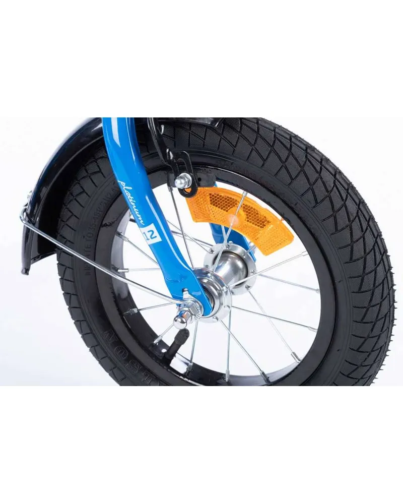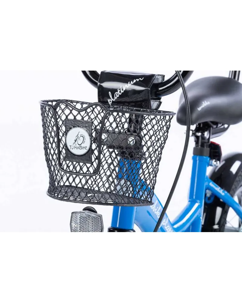 TOMABIKE™ Platinum 12” to solidny rower dziecięcy z prowadnikiem, bocznymi kółkami i podwójnym systemem hamowania (V-brake + torpedo), idealny do nauki jazdy od 3 roku życia. Stalowa, obniżona rama, regulowane siodełko i kierownica oraz bogate wyposażenie zapewniają bezpieczeństwo, komfort i dopasowanie do rosnącego dziecka.
